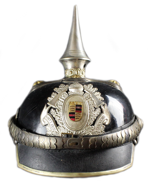 Die Pickelhauben unterschieden sich je nach Dienstgrad „Mannschaften“ oder „Offiziere“ Bei der Pickelhaube für Offiziere wurde sehr auf hochwertiges Material geachtet, die Beschläge wurden meist aus Silber oder aber auch aus Gold hergestellt.