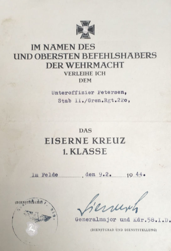 Dokumente wie Besitzzeugnisse, Verleihungsurkunden, dass Soldbuch und der Wehrpass sind unter Sammlern ein vielseitiges Sammelgebiet.